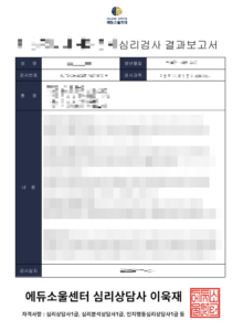단순히 수치만 제공하는 것이 아니라, 전문 심리상담사의 심층적인 해석과 향후 행동 방향에 대한 조언이 포함되어 있어, 보고서의 실용적 가치와 신뢰성이 매우 높습니다.
